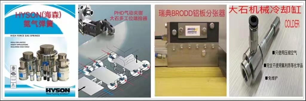 本公司是HYSON氮?dú)鈴椈稍谥袊目偞恚⑻峁┕苈吩O(shè)計(jì)及售后服務(wù)。同時(shí)還代理美國PHD氣動(dòng)夾鉗、SWEDEN機(jī)器人平衡缸、美國LSP噴涂系統(tǒng)、法國PRONIC模內(nèi)攻絲機(jī)等。另外,本公司還提供多工位模具自動(dòng)化端拾器產(chǎn)品,從設(shè)計(jì)、制造、運(yùn)輸、安裝、調(diào)試為客戶提供整套“交鑰匙”工程。